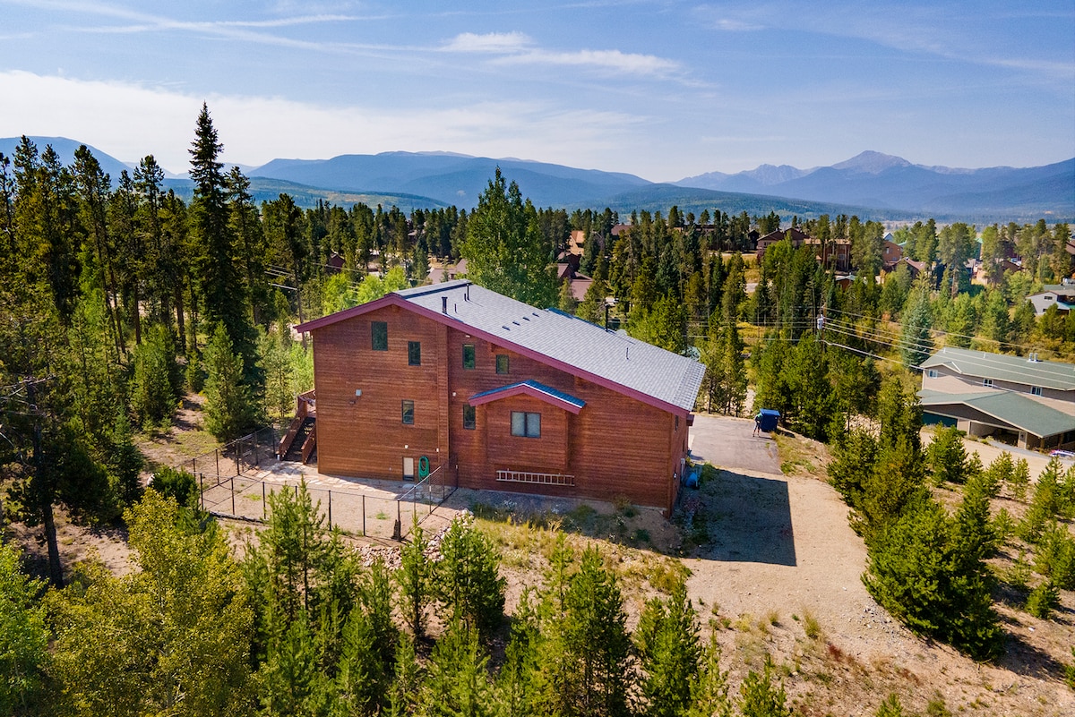 A three-story Fraser home set in the trees, built for larger groups who want mountain views, a game room, ski shuttle access, and a hot tub after the slopes.
