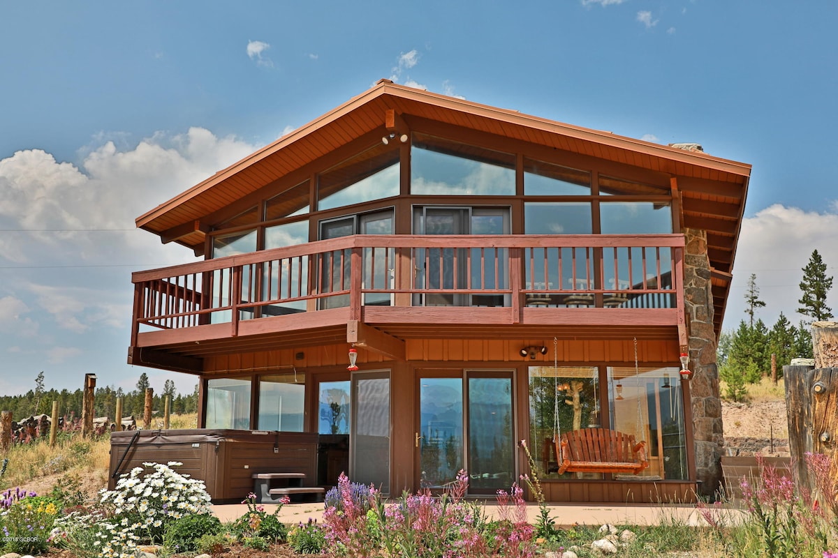A private five-acre mountain stay for ski groups and extended families, with panoramic views, a hot tub, and room for everyone to spread out.